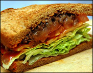 マーガリンをつけて焼いた食パンに色々なものを挟んだ、